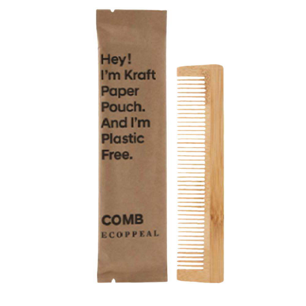 Bamboo or Corn starch comb. Stone paper sachet. Perfect for use in Hotels, Gyms, Vacation Renatal (Airbnb, VRBO) Guests Rooms, Motels and more.